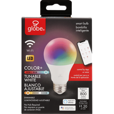 Globe Electric Wi-Fi Smart 60W Equivalent Tunable White Dimmable Frosted LED Light Bulb No Hub Required A19 E26 Base 2-Pack34208. Using your smartphone you can control the kind of light you use for any activity whether energizing concentrating or reading. Shop LED halogen and CFL bulbs smart lights bulbs Edison styles and more online.